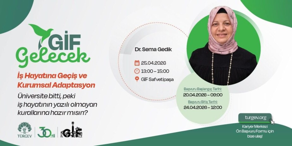 TÜRGEV Kariyer Merkezi Nisan Ayı Eğitim Buluşmalarına 'İş Hayatına Geçiş ve Kurumsal Adaptasyon' eğitimi ile devam ediyoruz.